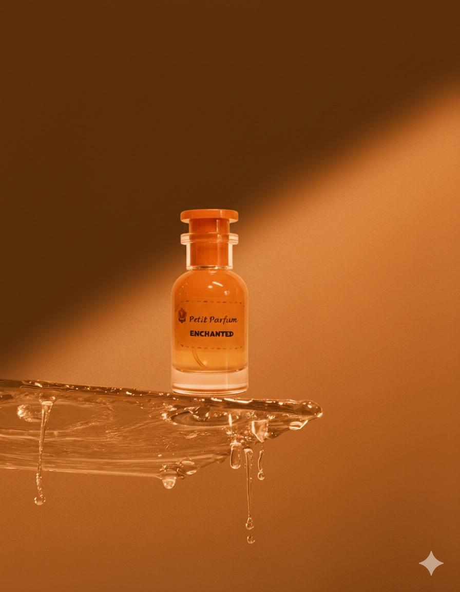 Our shy but indulgent Enchanted scent is exactly that its enchanting... it's about what is in the heart not what you see. This rich gold amber blend has the soft touch of cashmere with the subtle strength of musk and sweetness of white chocolate orchid ending with creamy richness of sandalwood. This unique oud blend brings out the spirit of the strength but also the touch of softness made for either a boy or girl for any special occasion.